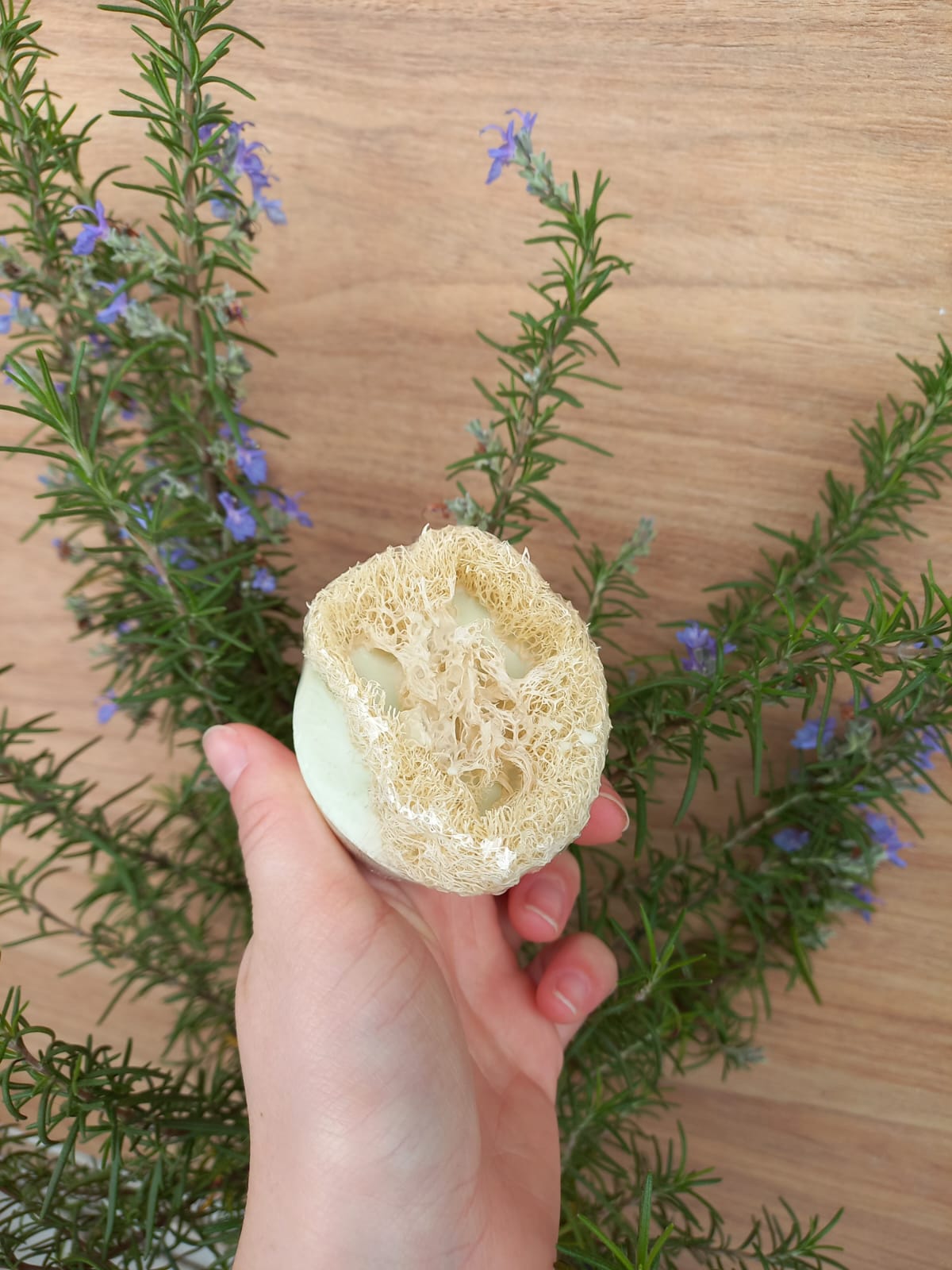 Sabonete hidratante no aroma alecrim promove esfoliação, renovação celular, hidratação e muito perfume. Com a bucha vegetal você aproveta todos os benefícios renovadores desse sabonete incrível. Não é um produto de cura energética mas o aroma em si já é muito terapêutico.